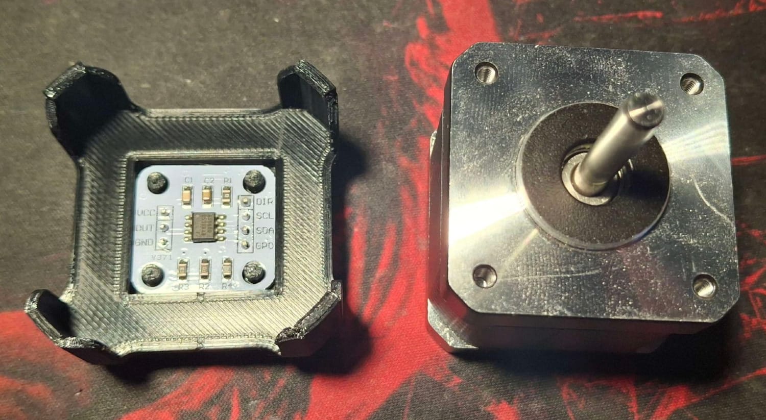 After that we need to set that small chip just under the magnet. I did that by printing a stand for AS5700 that i found on Thingiverse. Great thing about that particular 3D model is that it requires no screws.