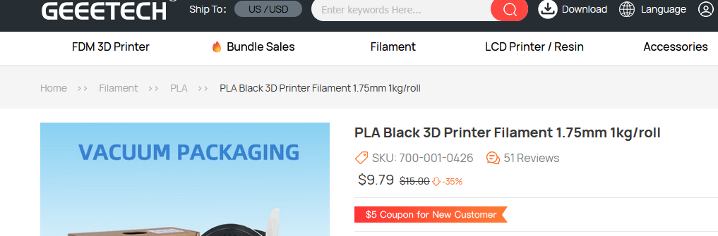 Elegoo.com sells PLA filaments for a price of 12.5€ per Kg.