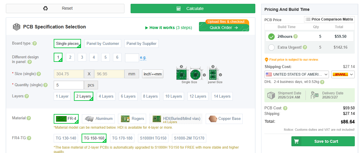 Printing a PCB.The price of designing a PCB will not be included considering how i can design it. So the questions is how much would it cost to print those PCBs and how much would components cost. So far i have used two services for printing PCBs. First is JLCPCB, and second is PCBWay.