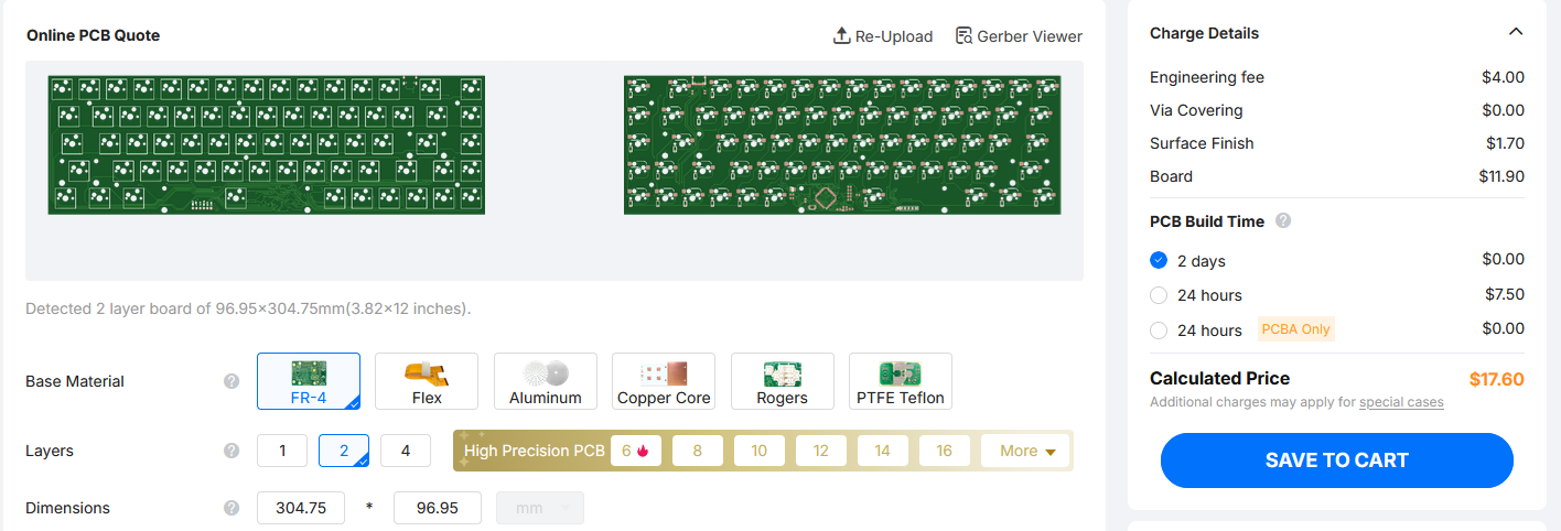 Keyboard casing will be 3D printed. It is lower quality, but it will work. There are services provided by PCBWay and JLCPCB for manufacturing a more serious casing e.g. By injection molding. But i have never done that and don't know how to calculate the price for that.
