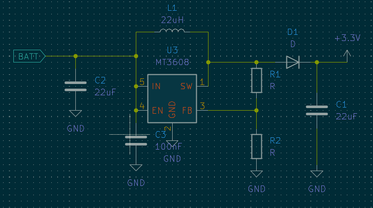 Clock will be powered by two AA batteries. So some kind of voltage regulator needs to be integrated, because two AA batteries in series are 3 volts, and microcontroller needs 3,3 volts constant. A good IC for the job is MT3608, it's small, but still easy to solder, and the price is about 0,08 EUR.