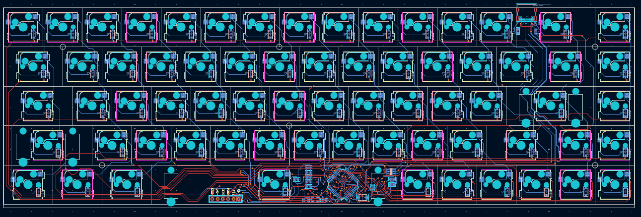 Considering how every keyboard that I had was similar. I'm sure there is some kind of standard for ordering all those keys in the right way. Once again, the job is cut completely by a tool someone else made. It's a plugin for KiCad called Keyboard Footprint Placer. It takes all the keyboard keys and orders them in a particular way, it even connects some traces.