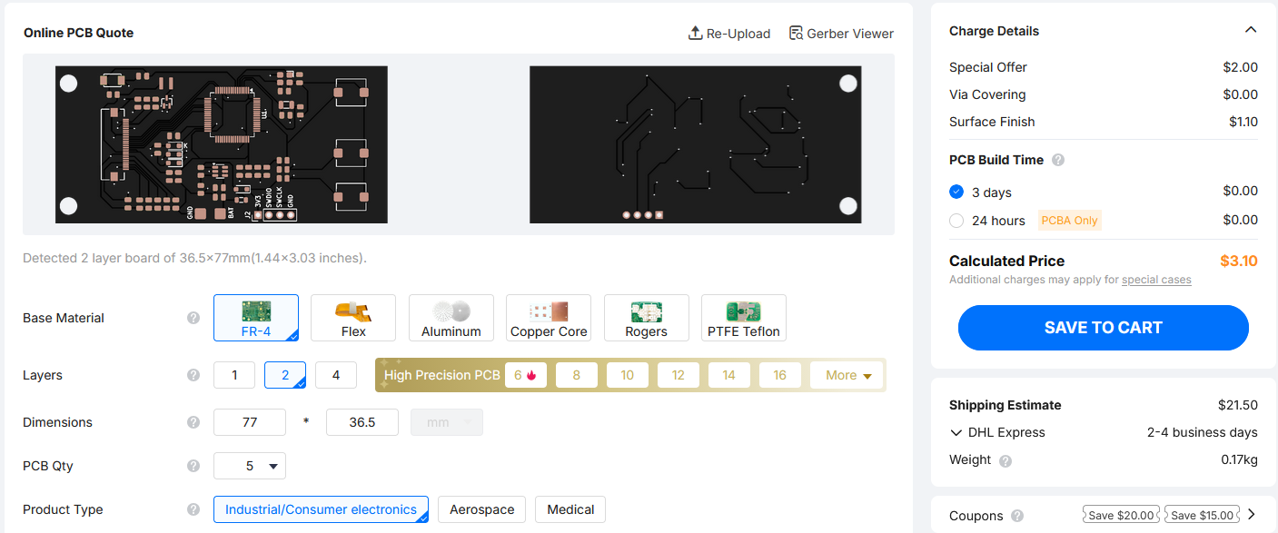 That's why I will probably wait for another board design, so both can be shipped at the same time for the same shipping price.