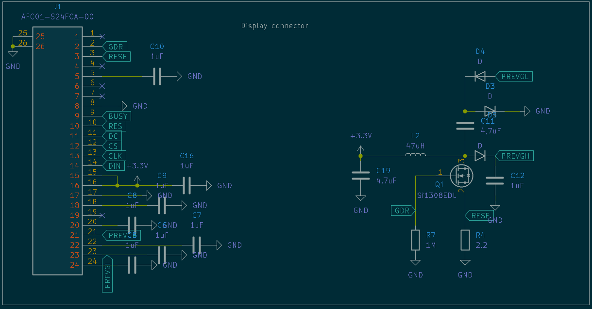 There was also a problem of dimensioning it. The board should be as big as the epaper display, but then there is a ribbon cabble that adds to the height, because it can't bend at the bottom of the screen. For that reason there is a notch at the bottom of the PCB.