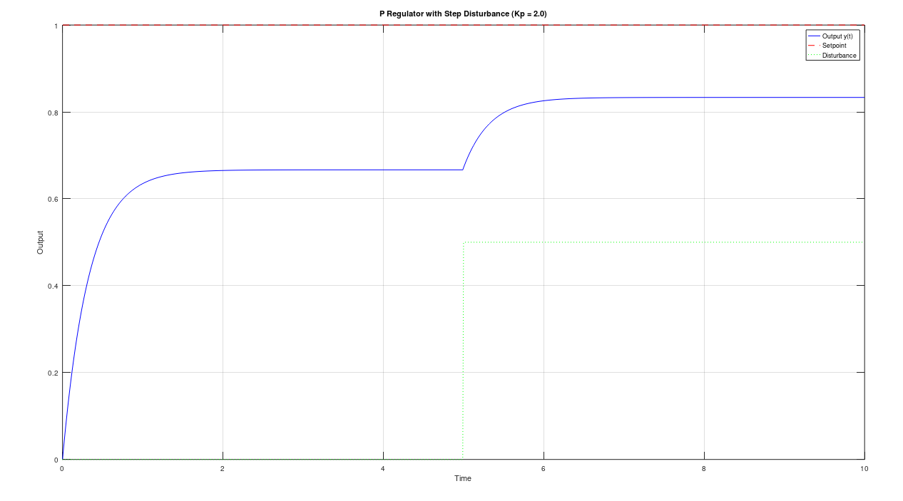 title(sprintf('P Regulator with Step Disturbance (Kp = %.1f)', Kp));